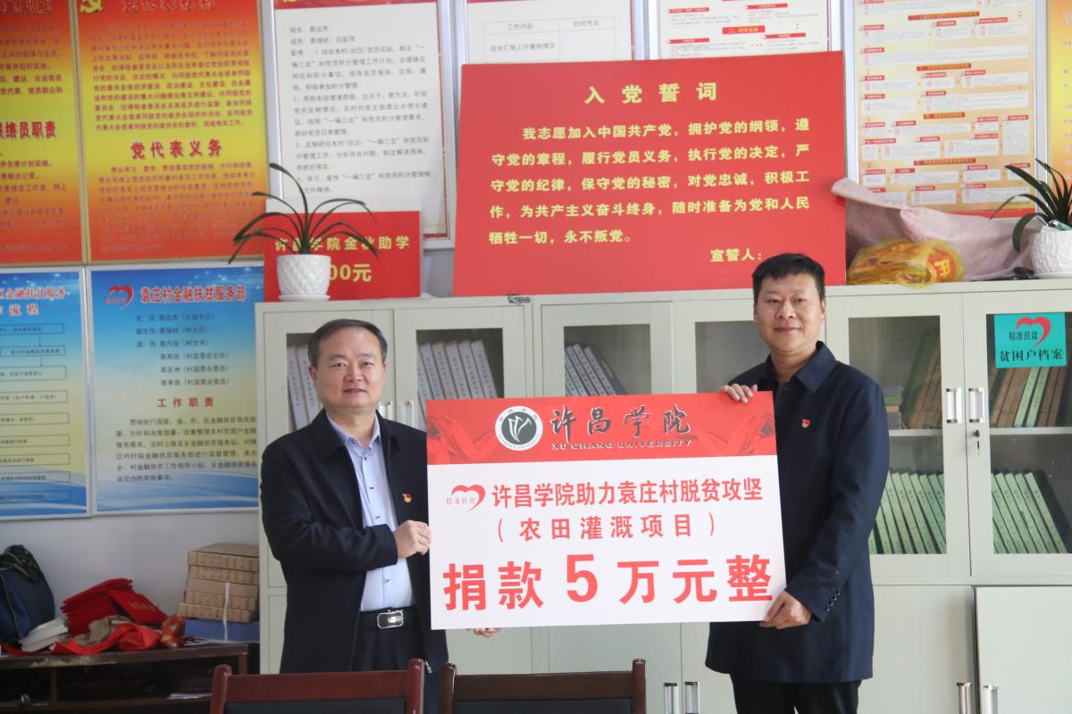 仪式上,副院长郭涛代表学校向袁庄村捐赠伍万元助力脱贫攻坚资金。他指出,金沙2004路线js5与袁庄村已结下深厚的友谊,接下来要争取更多好的项目在袁庄村落地开花结果,要利用好金沙官网各项资源,特别是文化教育资源,扶贫扶志相结合,物质文明与精神文明相结合,把乡村的精神文明建设、文化建设抓起来,把农民的精神面貌展现出来。要抓好农村党建工作,聚心齐力,办好惠民实事,全力以赴做好袁庄村各项帮扶工作。