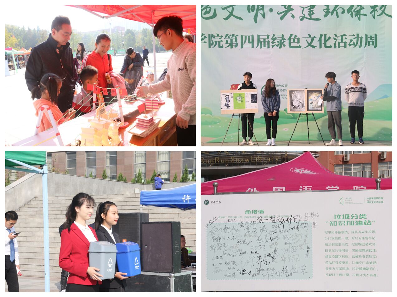 10月19日——20日,金沙官网第四届“传播绿色文明,共建环保校园”绿色文化活动周嘉年华集中展示活动在弘毅广场圆满举办,活动通过绿色环保时装秀、垃圾分类知识宣讲、绿色建筑模拟等形式,向广大师生传递共享、环保、发展的绿色理念。