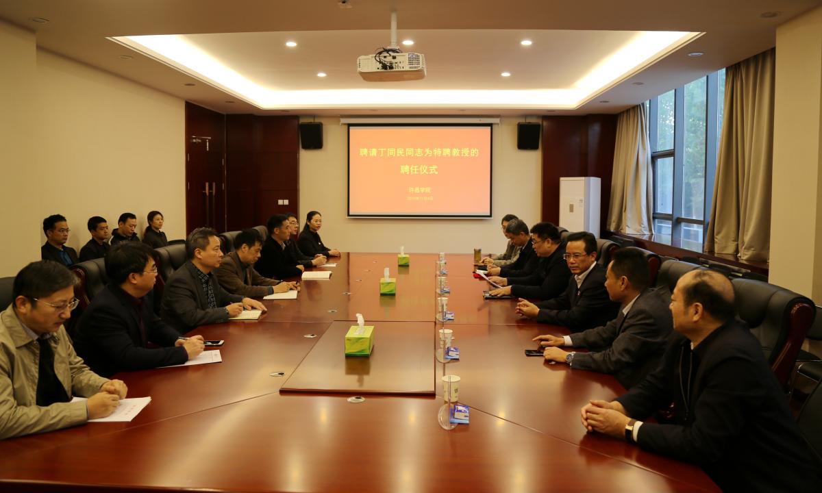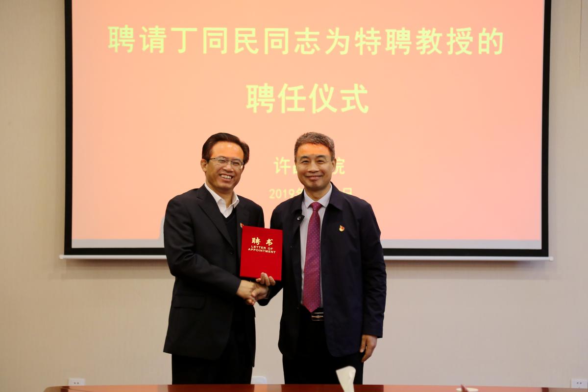 报告会开始前,学校举行了聘任仪式,聘请丁同民为特聘教授。