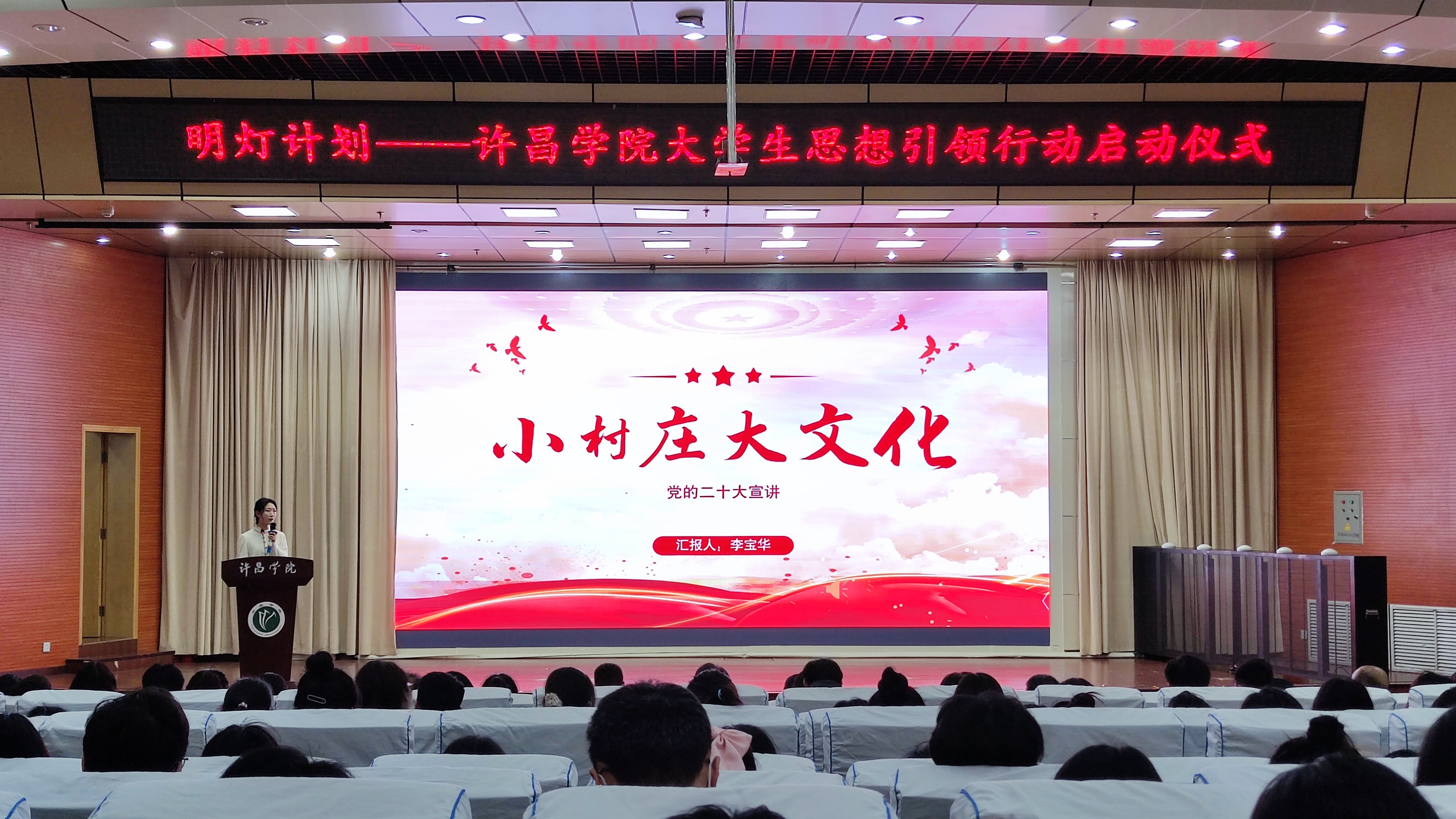 启动仪式上,党委宣传部部长王林对“明灯计划”的目标原则、开展形式、工作内容等方面进行了深入解读。法学院2020级学生韩雯君代表全校青年学生发言。“豫见理响”河南共青团党的二十大精神专题示范宣讲团成员张晨曦、李宝华两位老师围绕“创新驱动发展战略”和“传统文化的传承发展”等方面,分别以《从“0”到“1”的坚守与突破》《小村庄 大文化》为题,为“明灯计划”作了首场宣讲。